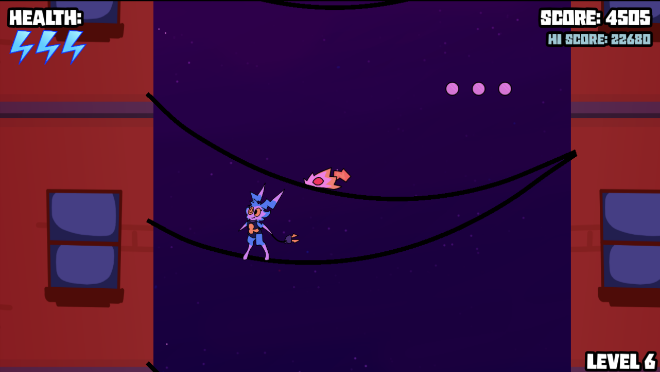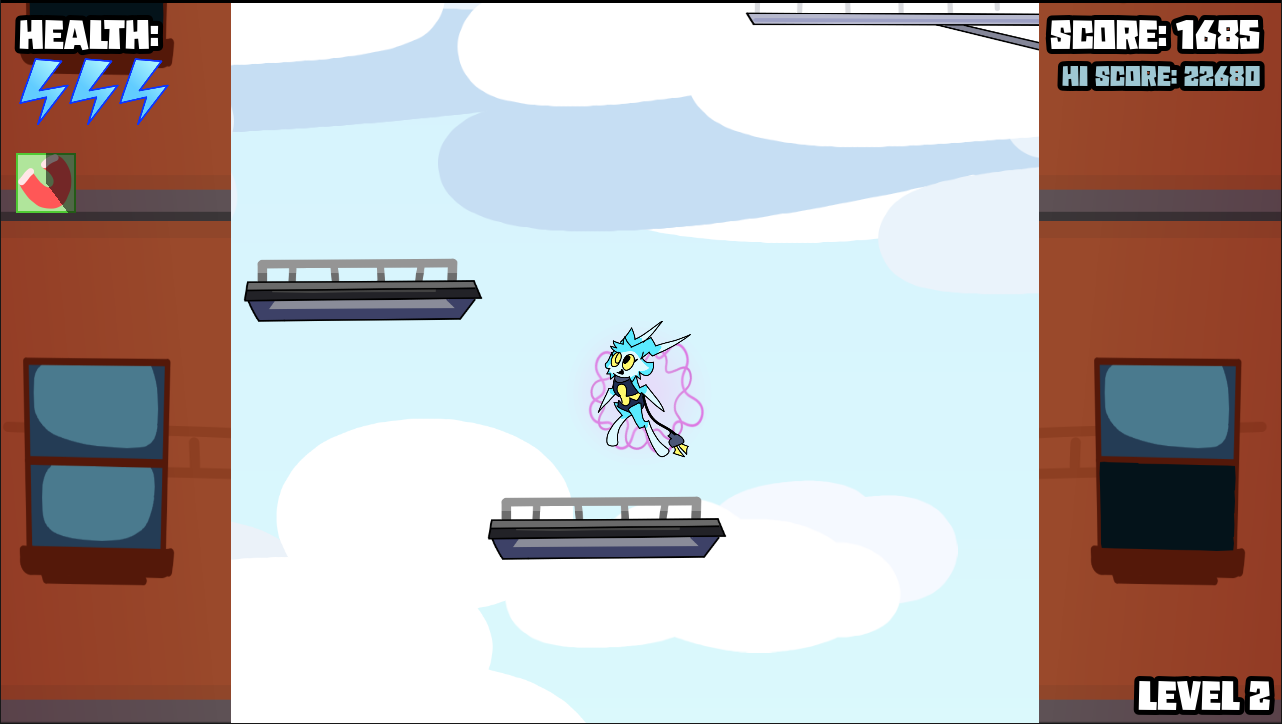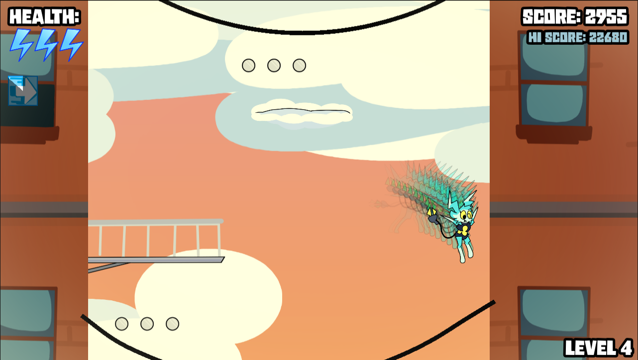 Meet Dubtap! This spunky lil electric critter loves to explore the city, whether authorities like it or not! She's especially taken to climbing up on the power lines - but it's dangerous, and she's a bit clumsy, so she's never made it very high on her own... help her jump her way up and up and up!